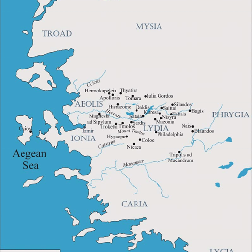 Small kingdom which appeared in western Turkey in the 1st millennium bc known to the Assyrians as Luddu. By about the 7th century bc it was an important staging post in trade between the Aegean and the oriental civilizations. Its capital at Sardis became rich, exploiting the gold of the nearby Pa...